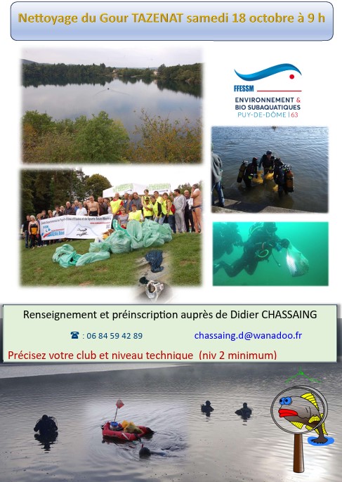 La commission Biologie CD63 organise une sortie nettoyage du Gour de Tazenat le samedi 18 octobre à 9 heures.